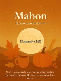 Mabon 🍂, l’équinoxe d’automne, est une belle fête de l’équilibre, de gratitude et de récolte. Pour le célébrer de façon simple et symbolique, tu pourrais :